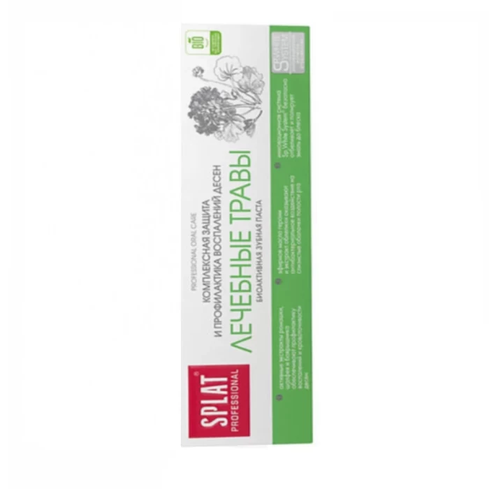 Splat ատամի մածուկը պատրաստված է դեղաբույսերի էքստրակտներով, նախատեսված է պարոդոնտիտի կանխարգելման համար։ Մածուկը չի պարունակում ներկեր: