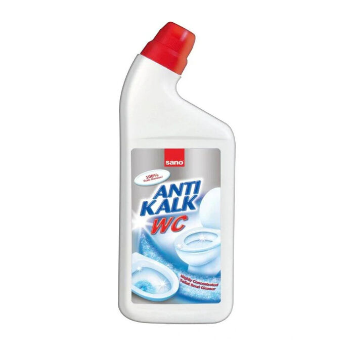 Բարձր արդյունավետ Sano Anti Kalk WC զուգարանակոնքի մաքրող միջոցը հեռացնում է կրաքարը, համառ բծերը, ժանգը, մաքրում և ախտահանում, հաղորդում է փայլ և թողնում թարմ նուշի բույր: Sano Anti Kalk WC զուգարանները մաքրող սարքը Իսրայելի Ստանդարտների ինստիտուտի կողմից արժանացել է պլատինե նշանի: Կիրառման եղանակը. Պտուտակեք գլխարկը՝ սեղմելով այն երկու կողմից և շրջելովԲարձրացրեք զուգարանի կափարիչըՇիշը պահեք այնպես, որ ապրանքը ընկնի զուգարանի եզրի տակՔամեք շիշը և հավասարաչափ քսեք ապրանքը շրջանագծովխոզանակԹողնել 5 րոպեԼվացեք ջրով