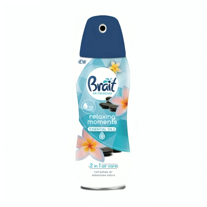 Brait օդը թարմացնող միջոցը (չոր սփրեյ) չեզոքացնում է հոտերը և հաղորդում թարմ բուրմունք: Չոր սփրեի բանաձևի շնորհիվ մակերեսի վրա նստվածք չի թողնում: